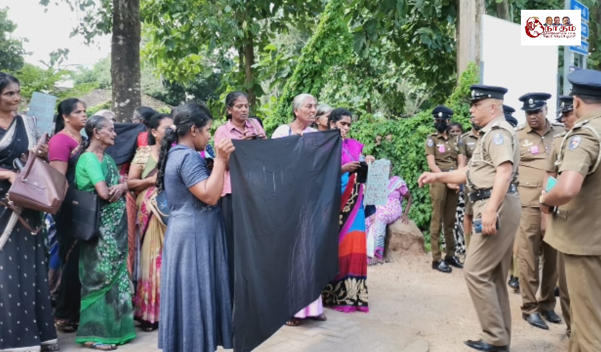 ஜனாதிபதியின் விஜயத்திற்கு எதிர்ப்பு தெரிவித்து கலந்துரையாடல் இடம்பெற்ற மண்டபத்திற்கு செல்லும் பாதையில் வடக்கு - கிழக்கு வலிந்து காணாமல் ஆக்கப்பட்ட உறவுகளின் சங்கத்தினர் கறுப்புக் கொடிகளை ஏந்தியவாறு தமது எதிர்ப்புப் போராட்டத்தை முன்னெடுத்திருந்தனர்.