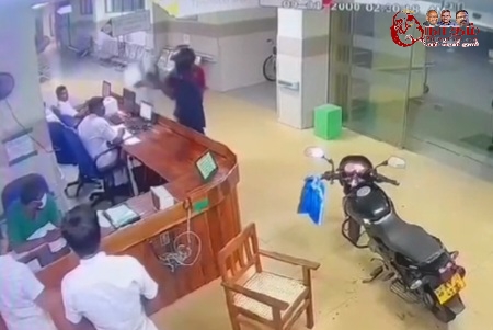 இதன்போது ''ஏன் மோட்டார் வண்டியில் உள்ளே வந்தீர்கள்'' என கேட்ட வைத்தியசாலை உத்தியோகத்தர் மீது குறித்த நபர், அலுவலகம மேசையில் இருந்த அச்சு இயந்திரத்தை தூக்கி தாக்கியுள்ளார்.